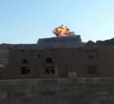 بالفيديو .. لحظة تدمير طيران التحالف لأضخم قصور المخلوع صالح في سنحان