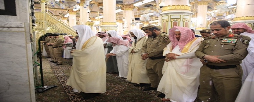 إمام المسجد النبوي يؤم المصلين في محراب رسول الله