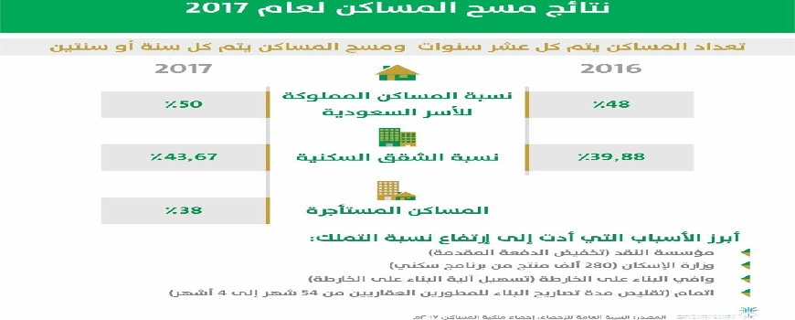 نجحت برامج وزارة الإسكان، في رفع نسبة التملك إلى 49.91%، حيثُ أطلقت (الوزارة) خلال الأعوام الماضية عدد من البرامج التي ساهمت في رفع نسب التملك.