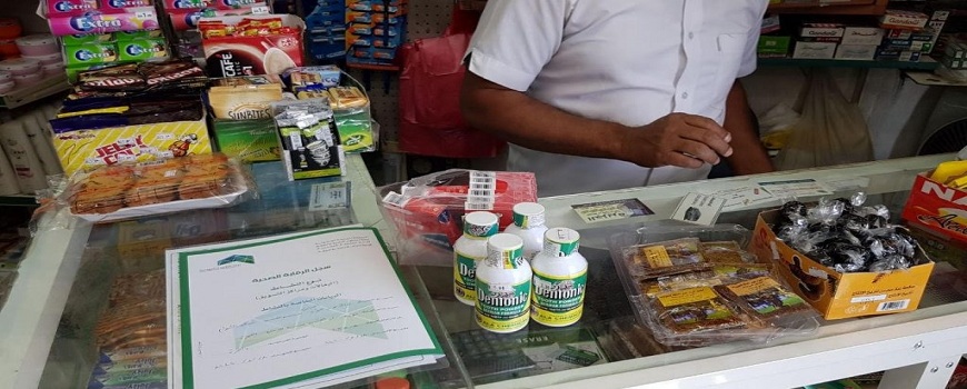 وتم التحفظ على أكثر من (160) من الكريمات والدهانات والأدوية غير المرخصة والحلويات مجهولة المصدر، و(19) جالون مياه غير مطابق للاشتراطات، وتم اتخاذ اللازم وتطبيق لائحة الغرامات على تلك المحلات.
