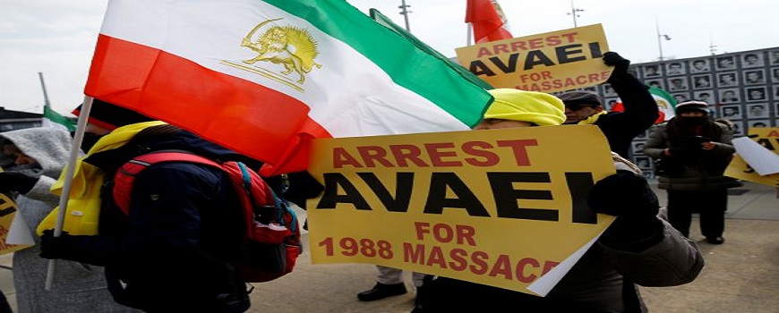 وأقام المتظاهرون أيضاً هرماً من الأحذية يرمز إلى آلاف المعتقلين السياسيين الذين قضوا العام 1988 في مجزرة يتهم اوائي بالمشاركة فيها.