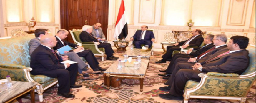 ولفت هادي، إلى تجارب المشاورات السابقة مع الانقلابيين وكلاء إيران الذين لا يوفون بوعود أو عهود أو يكترثون للمجتمع الدولي وقرارات الشرعية الدولية ومرجعيات السلام ذات الصلة المتمثّلة بالمبادرة الخليجية واليتها التنفيذية المزمنة ومخرجات مؤتمر الحوار الوطني والقرارات الأممية وفِي مقدمتها القرار 2216م، مستعرضا أمام المبعوث الأممي واقع الأوضاع في اليمن منذ انقلاب المليشيات الحوثية الإيرانية على التوافق والسلام في اليمن تنفيذا لمخططات وأجندة ايران المعادية لليمن والمستهدفة لدول الجوار وما خلفته معها من معاناة إنسانية وحصار للمدن والعبث بمقدرات اليمن في كافة المجالات وما أحدثته من كارثة إنسانية.