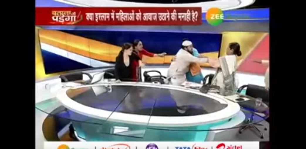 انقلبت إحدى الحلقات الحوارية في برنامج تلفزيوني بالهند إلى اشتباك عنيف وضرب، وذلك لدى استضافة محامية ورجل دين لمناقشة “الطلاق الثلاثي”، ولم يكتمل الحوار بينهما حتى انقلب إلى اشتباك عنيف وتبادل الصفع على الوجه.