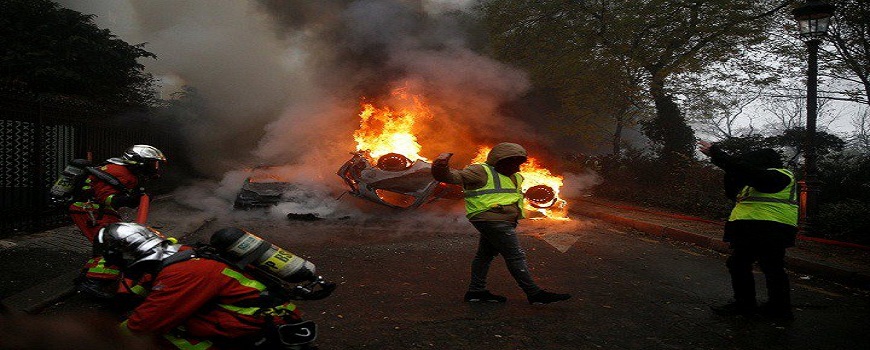 في السياق، أعلنت الشرطة، (الأحد)، إصابة 133 شخصا بينهم شرطيون واعتقال 412 آخرين، وسط حالة تمرد في العاصمة باريس مع ارتفاع سقف المطالب حتى (رحيل الرئيس)، وذلك في خضم أسوأ أعمال شغب بمناطق حضرية فرنسية منذ سنوات.