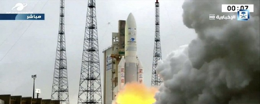 أعلنت المملكة العربية السعودية ممثلة في مدينة الملك عبد العزيز للعلوم والتقنية، عن إطلاق القمر السعودي الأول للاتصالات (SGS-1)، بنجاح من مركز غويانا الفرنسي للفضاء على متن الصاروخ “أريان 5″، الذي وقع صاحب السمو الملكي الأمير محمد بن سلمان بن عبد العزيز ولي العهد نائب رئيس مجلس الوزراء وزير الدفاع – حفظه الله -، على القطعة الأخيرة له بعبارة “فوق هام السحب”.