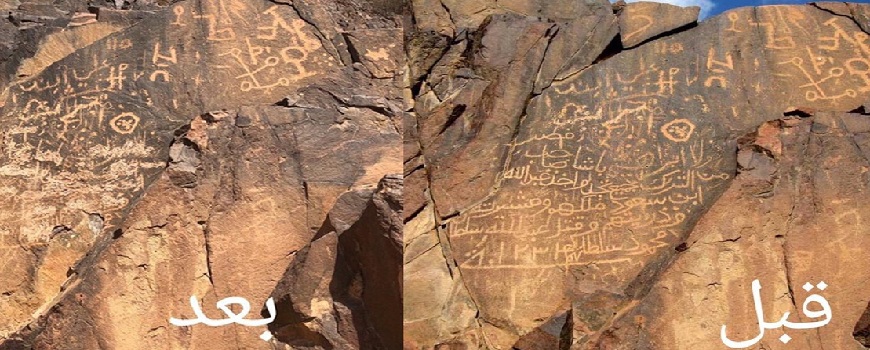 ملاحقة المتعدي على نقش الشيخ قرناس بالقصيم