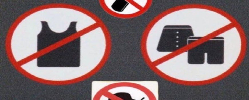 1ـ عدم الظهور في مكان عام بزي أو لباس غير محتشم، أو ارتداء زي أو لباس يحمل صورًا أو أشكالاً أو علامات أو عبارات تسيء إلى الذوق العام.