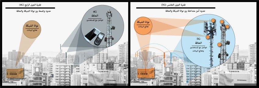 لكن التحديثات ستغير بشكل كبير الطريقة التي تتم بها معالجة البيانات، ويأتي ذلك مصحوبًا بمخاوف أمنية. مع تقنية الجيل الرابع (4G)، كانت “نواة” النظام هي المحور المركزي للشبكة الذي يستخدم أجهزة الحاسوب لفرز ومعالجة جميع البيانات. وطالما كانت النواة الأساسية للشبكة تتمتع بالحماية، كذلك كانت بياناتكم الخاصة متمتعة بالحماية. ومع تقنية الجيل الرابع (4G)، كانت “حافة” الشبكة – وهي الجزء المؤلف من الأبراج والهوائيات – منفصلة إلى حد كبير عن معالجة البيانات الأساسية.