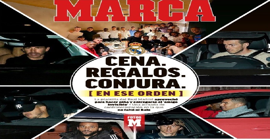 وعنونت صحيفة “ماركا”: “العشاء، الهدايا، تعزيز الروح (بهذا الترتيب)”.
