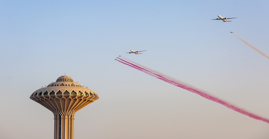 وشارك في العروض القوات الجوية الملكية السعودية، وفريق الصقور السعودية، وطائرة (بوينج 777) للخطوط الجوية العربية السعودية.