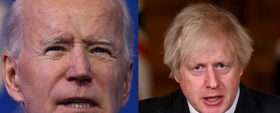 أجرى الرئيس الأميركي جو بايدن، محادثات هاتفية مع رئيس الوزراء البريطاني بوريس جونسون ف،ي أول مكالمة للرئيس الأمريكي مع زعيم أوروبي منذ تنصيبه، وتحدث الزعيمان عن الوباء وتغير المناخ والأمن والتجارة.