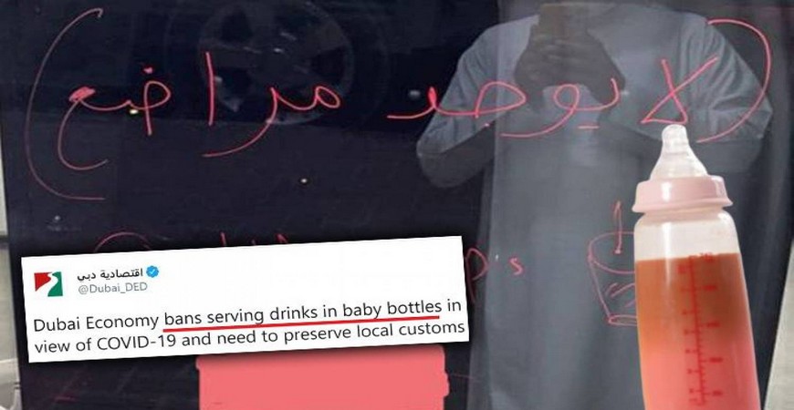 طالبت حكومة دبي، ممثلة في دائرة التنمية الاقتصادية، من المقاهي التوقف عن تقديم المشروبات في الزجاجات (رضاعات) المخصصة للأطفال، وأصدرت قراراً بحظر مثل هذه الممارسات. وذكرت دائرة التنمية الاقتصادية في دبي عبر حسابها الرسمي في «تويتر» أن «هذه الممارسة مخالفة للعادات المحلية، كما أنها تنتهك الإجراءات الاحترازية المعمول بها ضد انتشار فيروس كورونا»، منوهة إلى أن «سوء استخدام الزجاجة يمكن أن يساهم في انتشار فيروس كورونا». وقامت الدائرة بالمطالبة بوقف هذه الممارسة السلبية، التي نبه إليها مستخدمو وسائل التواصل الاجتماعي في الإمارات. هذا ودعت دائرة التنمية الاقتصادية الجمهور إلى الإبلاغ عن أي «ممارسات سلبية» يصادفونها من خلال تطبيق دبي للمستهلكين. جاءت هذه التوجيات بعد أن تم رصد بعض الأشخاص يجلبون زجاجات الأطفال إلى المقاهي، لملئها بالقهوة وغيرها من المشروبات. جدير بالذكر، أن الكويت شهدت هي الأخرى انتشاراً في الأيام الأخيرة لهذه الظاهرة.