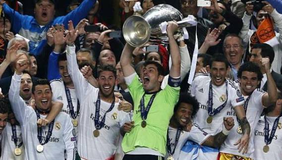 حيا نجوم ريال مدريد جماهيرهم في السعودية بمناسبة احتفالهم بالفوز بلقب كأس دوري أبطال أوروبا لكرة القدم للمرة العاشرة في تاريخ النادي إثر فوزهم البارحة الأولى على جارهم الإسباني أتليتيكو مدريد بأربعة أهداف مقابل هدف واحد.