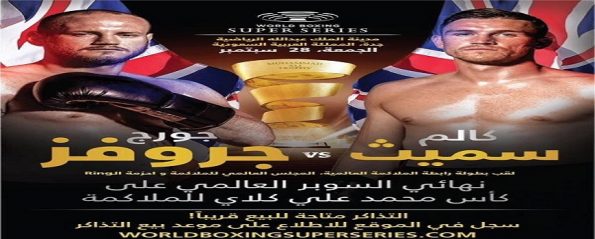 وستجمع المباراة التي تستضيفها مدينة الملك عبدالله الرياضية بجدة، بين الملاكمين البريطانيين جورج جروفز، وكالم سميث، لفئة الوزن المتوسط.