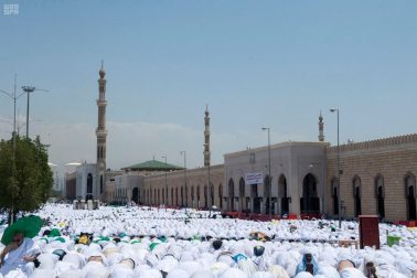 توافدت جموع غفيرة من حجاج بيت الله الحرام منذ وقت مبكر إلى مسجد نمرة في مشعر عرفات اليوم لأداء صلاتي الظهر والعصر جمعاً وقصراً ؛ اقتداء بسنة النبي المصطفى محمد صلى الله عليه وسلم والاستماع لخطبة عرفة .