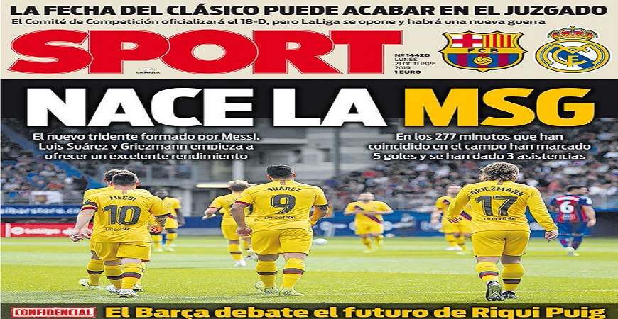 وعلى الصفحة الرئيسية لصحيفة “سبورت”: “ولادة MSG”.