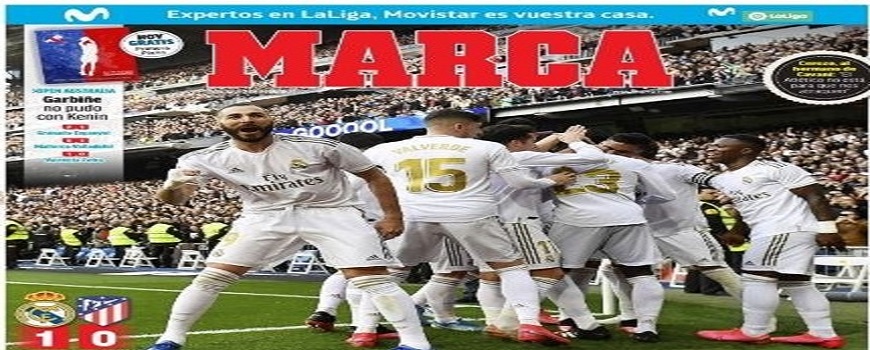 سلطت الصحف الإسبانية، الصادرة الأحد (الثاني من فبراير 2020م)، الضوء على انتصار ريال مدريد في الديربي على جاره أتلتيكو مدريد، والحفاظ على صدارته لترتيب الليجا، ورغبة برشلونة في الانتصار على ليفانتي ومواصلة ملاحقة الميرنجي.