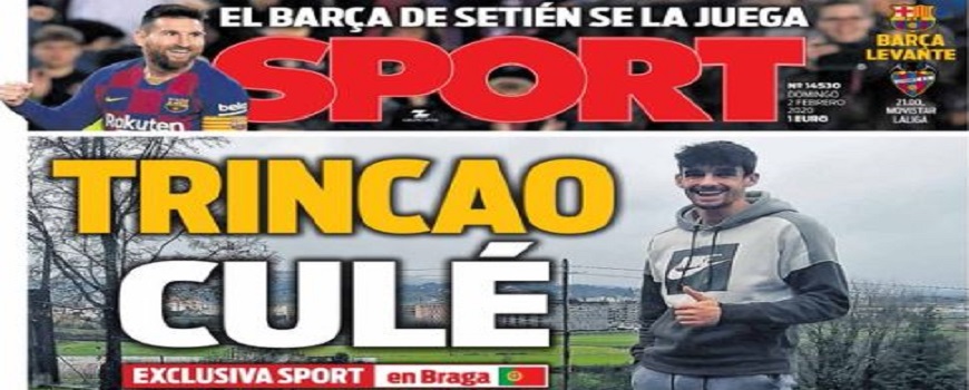 وعلى الصفحة الرئيسية لصحيفة “سبورت”: “ترينكاو الكتالوني”.