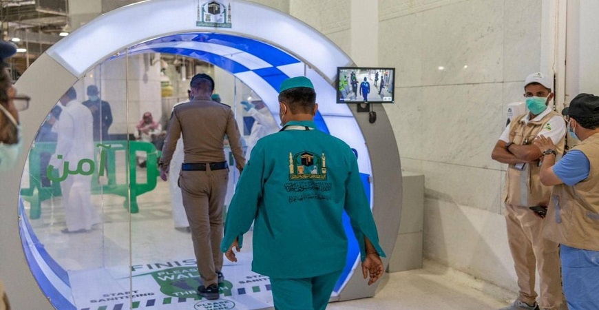 ويمر عبر البوابات كل من يدخل إلى المسجد الحرام لمباشرة أعمالهم اليومية، كما يتم تعقيم البوابات بشكل دوري عقب استعمالها.