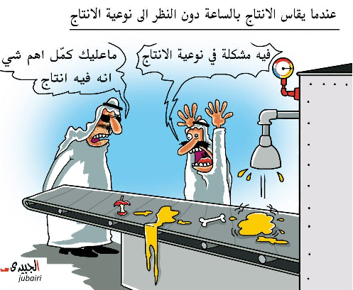 كاريكاتير طريف حول الفرق “الإنتاج بالساعة” ونوعية الإنتاج فى المملكة