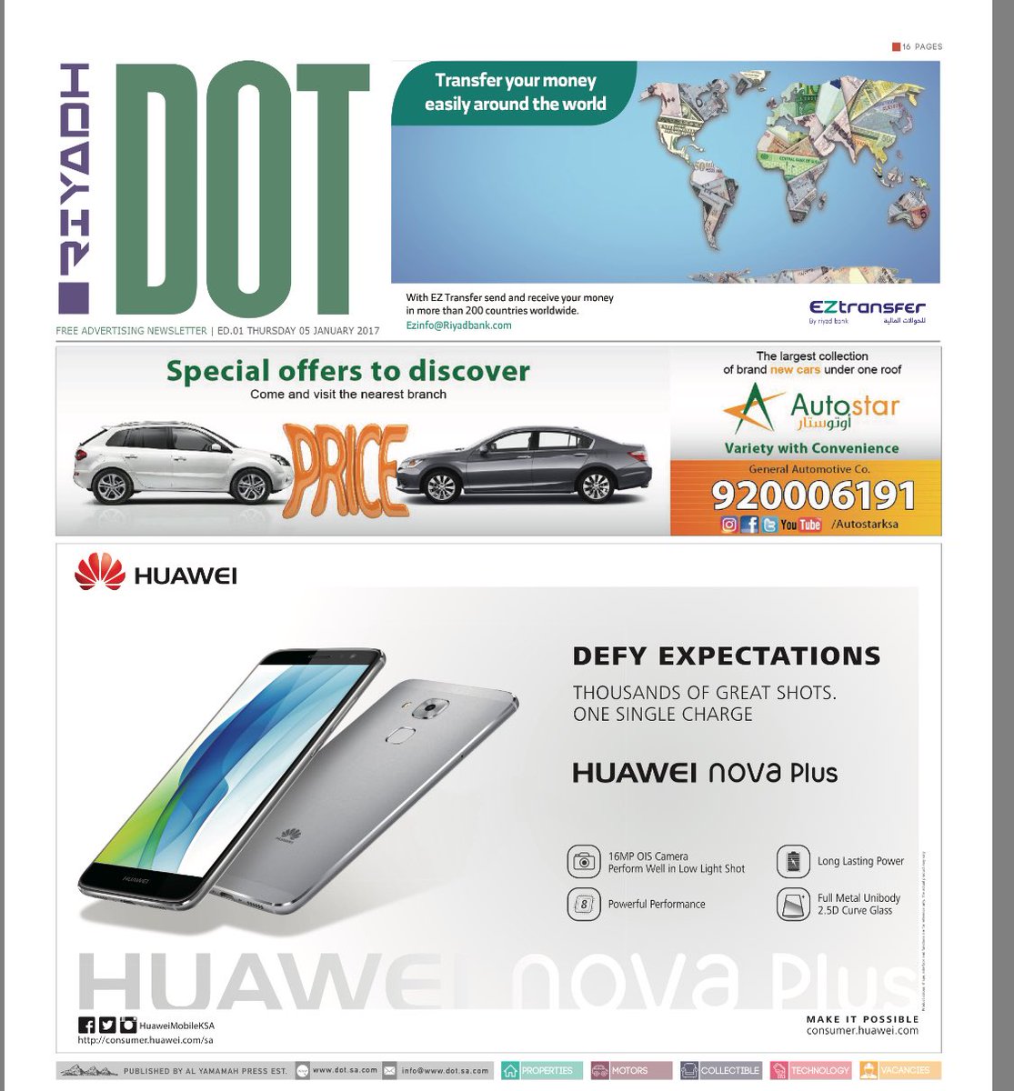 وفي الوقت الذي كنا نعتقد فيه بأن أي نقطة هي النهاية، غيرت مؤسسة اليمامة هذه القناعة حين أصدرت العدد الاول من النشرة الإعلانية الأسبوعية دوت (Dot.) باللغات الإنجليزية والأردو والتغالو، بعد دراسة متأنية للواقع الميداني حيث وجدت بوصلتها الاستثمارية أن السوق السعودي يفتقر إلى مادة إعلانية تحاكي اللغات الأجنبية في الدعاية والإعلانات المبوبة، الأفكار كثيرة والسوق كبير والموارد متوفرة لمن يريدون الاستمرار في الحياة وضمان المستقبل مثل مؤسسة اليمامة.