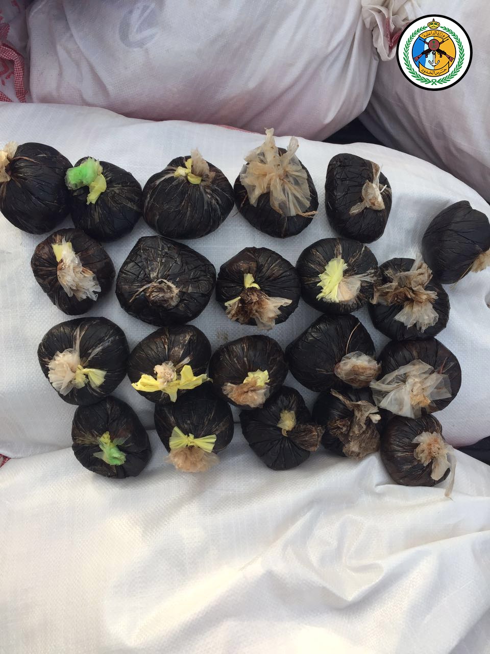 وأضاف الحربي، تم القبض عليهما وعددهما شخصين مصريي الجنسية، كما تمت المباشرة في استخراج الأكياس والجالون من البحر والتي اتضح بعد انتشالها وتفتيشها احتوائها على ما مجموعه (٩٢٦٠٠٠) تسعمائة وستة وعشرون ألف قرص إمفيتامين (كبتاجون) و(٣.٩٦٨) ثلاثة كيلوجرامات وتسعمائة وثمانية وستون جراماً من مادة الأفيون المخدر.