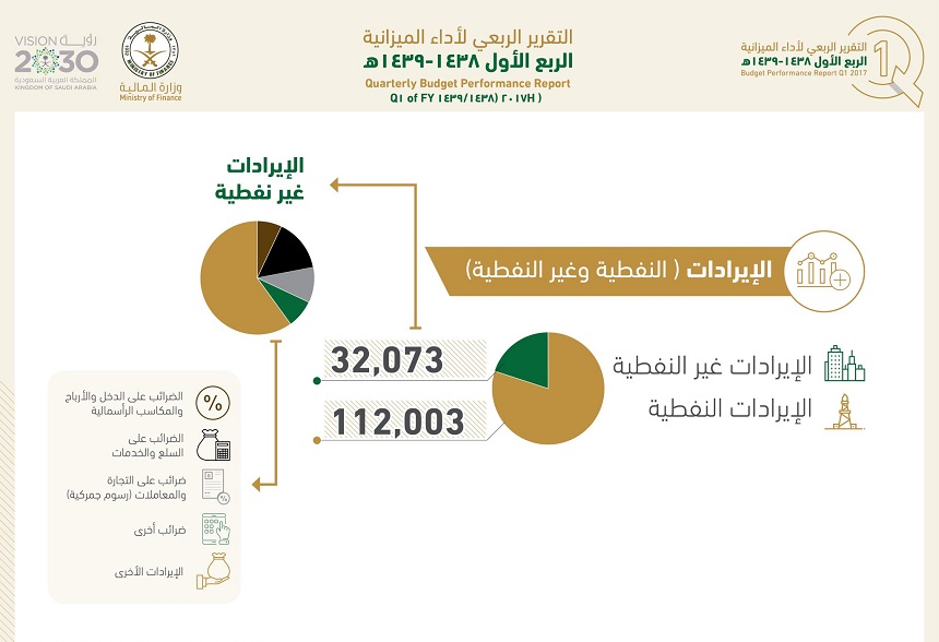 ميزانية الربع الأول: 144 مليار ريال إيرادات و 170 مليار نفقات
