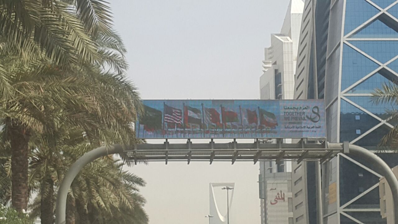 وتزينت الرياض على امتداد الطرقات والميادين والساحات التي سيسلكها قادة أكثر من 50 دولة عربية وإسلامية بالإضافة للرئيس الأمريكي في طريقهم من المطار إلى مقر انعقاد القمة ومقرات إقاماتهم , بأعلام تلك الدول واللوحات والعبارات الترحيبية بالضيوف.