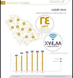 وبشأن عدد مستخدمي الإنترنت في المملكة أوضحت (الهيئة) في نشرتها أن عدد المستخدمين للإنترنت في المملكة قد وصل إلى 24 مليون مُستخدم.