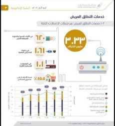 وبلغت الاشتراكات في خدمات النطاق العريض عبر شبكات الاتصالات المتنقلة بتعريفها الشامل نحو 25 مليون اشتراك، فيما بلغ عدد الاشتراكات في خدمات النطاق العريض عبر شبكات الاتصالات الثابتة حوالي 3.33 مليون؛ وتشمل خطوط المشتركين الرقمية (DSL)، التوصيلات اللاسلكية الثابتة، والألياف البصرية، والخطوط السلكية الأخرى.