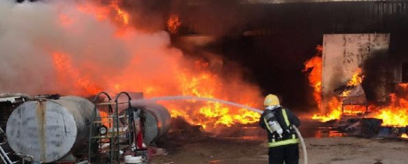 بالصور..إخماد حريق هائل بمستودعين في سكاكا