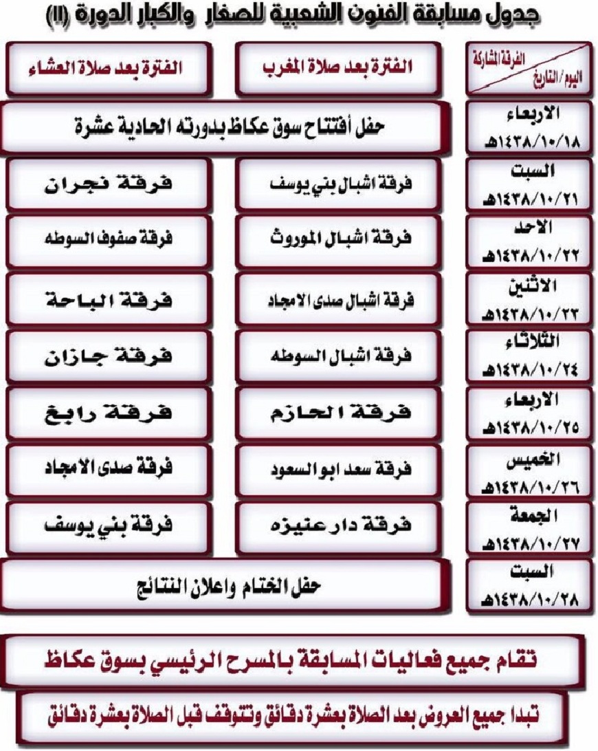 جدول مسابقات الفنون الشعبية بسوق عكاظ