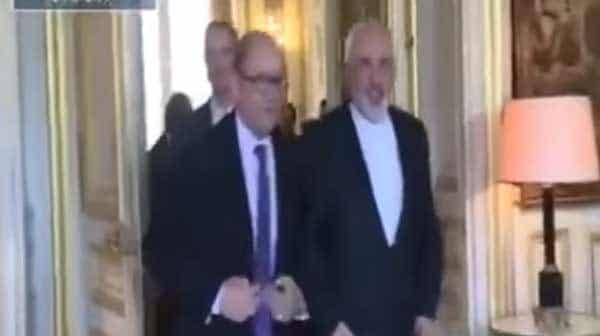 وبيّن المقطع، خروج وزير الخارجية الفرنسي مع ظريف من غرفة الاجتماعات بعد مشاورات ومباحثات بين الطرفين، ليحاول وزير خارجية إيران مصافحته، ولكنه تركه واستمر في المشي عن عمد، ليقابله مراسل تليفزيون إيران للحصول على تصريحات، إلا أن جون إيف لودريان رفض التحدث.
