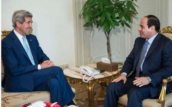 وكان كيري وصل اليوم الى مصر في زيارة مفاجئة لاعلى مسؤول امريكي منذ تنصيب الرئيس عبد الفتاح السيسي. حيث سيلتقي كيري رئيس الدولة المصرية الذي ادى اليمين قبل أسبوعين. وبمناسبة هذه الزيارة التي تستمر بضع ساعات اعلن مسؤولون اميركيون ان واشنطن افرجت عن 572 مليون دولار من المساعدة المخصصة لمصر قبل نحو 10 ايام بعد حصولها على الضوء الاخضر من الكونجرس.