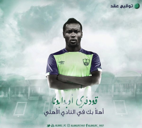 أعلن االنادي الأهلي عن تعاقده مع لاعب المنتخب النيجيري، غودفري أوبوابونا البالغ من العمر 26 عامًا لموسم واحد قابل للتمديد. بحسب ما جاء على حساب النادي بموقع التواصل الاجتماعي “تويتر” .