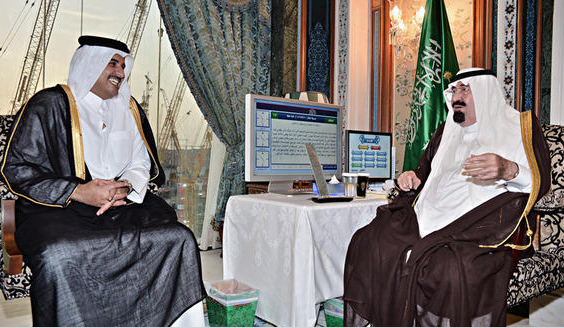بعث خادم الحرمين الشريفين الملك عبدالله بن عبدالعزيز برقية تهنئة للشيخ تميم بن حمد أمير قطر بمناسبة ذكرى توليه مهام الحكم في قطر. وأعرب الملك باسمه واسم شعب وحكومة المملكة العربية السعودية عن أصدق التهاني وأطيب التمنيات بالصحة والسعادة له ولحكومة ودولة قطر التقدم والازدهار.