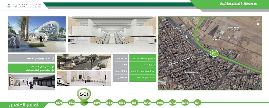 وتفقد الأمير محمد، خلال زيارته الميدانية، بتاريخ الأحد (السادس من أغسطس 2017م)، محطة السليمانية على المسار الأخضر (محور طريق الملك عبد العزيز)، واستمع إلى شرح عن مكوناتها وحجمها وتصميمها وطريقة بنائها وسعتها من الركاب.