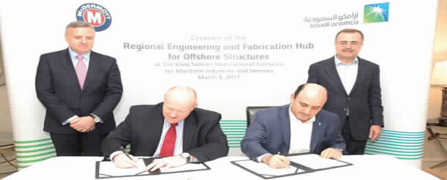 وقعت شركة أرامكو السعودية، اليوم الثلاثاء (الثامن أغسطس 2017م)، عقداً للقيام بأعمال الحفر واستصلاح الأراضي وتوفير الهياكل البحرية لمشروع مجمع الملك سلمان العالمي للصناعات والخدمات البحرية في رأس الخير.