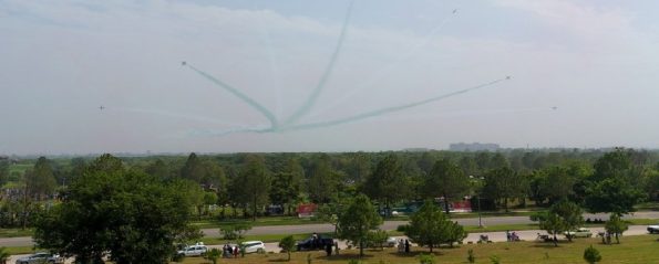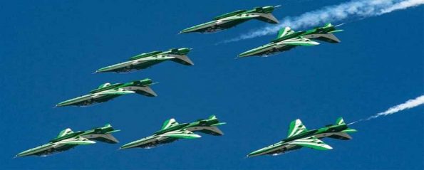 ورسمت (الصقور السعودية) العديد من اللوحات الاستعراضية الجماعية والفردية التي زينت سماء إسلام آباد ضمن العرض الجوي الذي شاهده لرئيس الباكستاني ممنون حسين، وسفير خادم الحرمين الشريفين لدى باكستان نواف بن سعيد المالكي، وعدد من كبار المسؤولين الباكستانيين من مدنيين وعسكريين، ورؤساء السلك الدبلوماسي، وعدد من عامة الشعب الباكستاني.