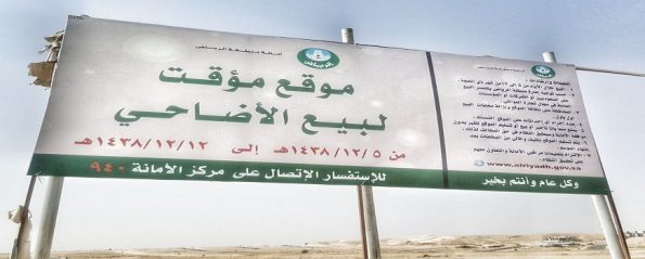 دشّنت أمانة منطقة الرياض، اليوم السبت (26 أغسطس 2017م)، الموقع الرسمي للبرنامج الموسمي للأضاحي، والذي يُحدد كافة تفاصيل الأسواق الثابتة والمؤقتة، والمسالخ الثابتة والمتنقلة، وطريقة الحصول على الخدمات، وموقع كل خدمة عبر خرائط (جوجل).