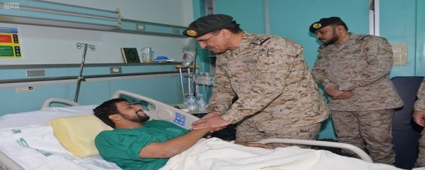 وأشاد اللواء الركن العلويط، بالتضحيات الغالية التى يقدمونها للدفاع والحفاظ على أمن واستقرار وسلامة حدود الوطن، مؤكداً أن رجال القوات المسلحة يثبتون كل يوم بما يقدمونه من بطولات و تضحيات أنهم أبناء جيش وطني مخلص يحملون على عاتقهم أمانة الدفاع عن دينهم ووطنهم ويضربون أروع الأمثلة في البطولات والتضحيات، معرباً عن تمنياته لهم بالشفاء العاجل والعودة لاستكمال مهامهم في الدفاع عن الوطن وصون مقدساته.