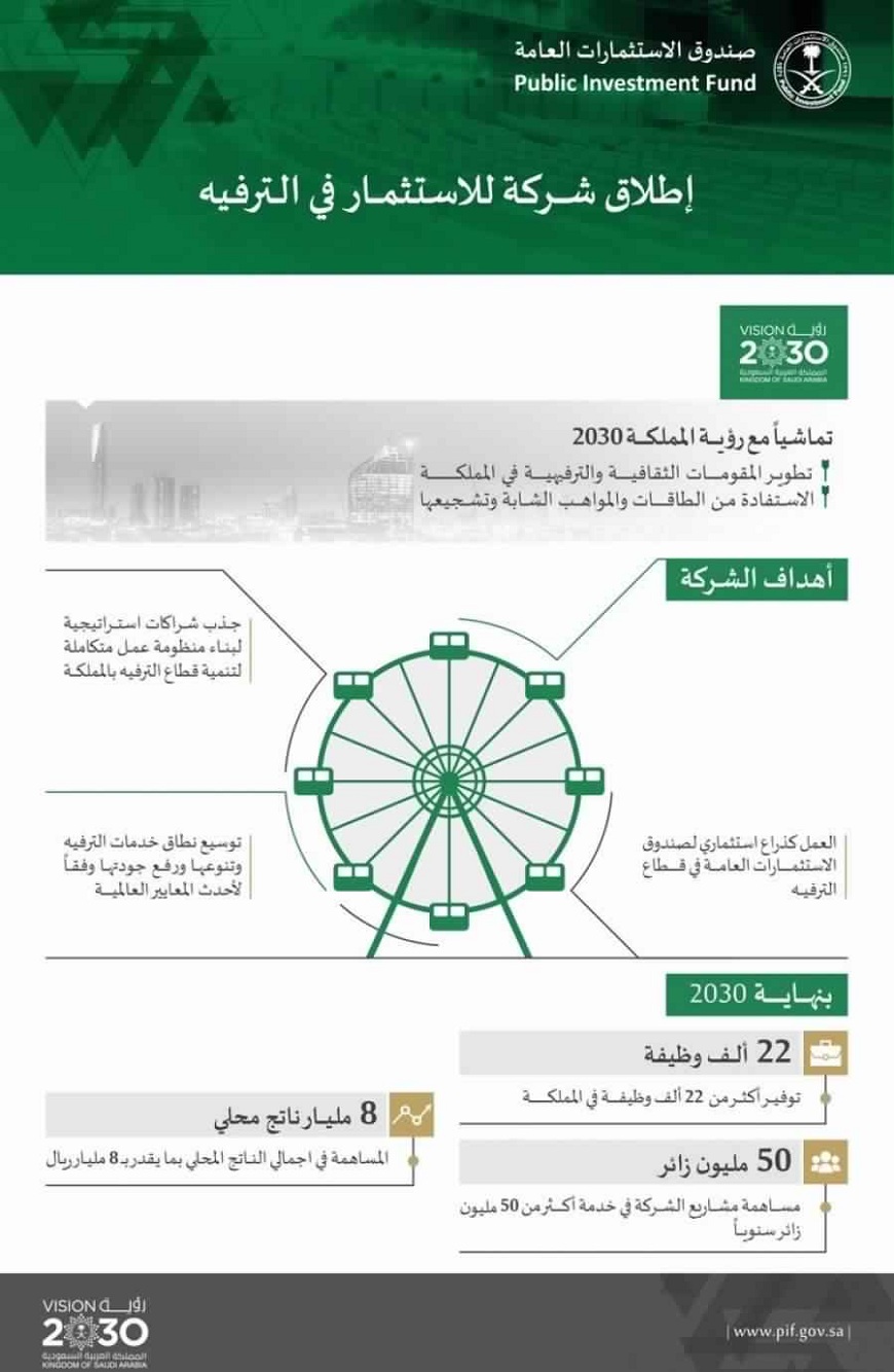 وسينعكس دور الشركة في تسهيل توفير عناصر الترفيه المناسبة لأفراد المجتمع والمساعدة في الاستفادة من المبالغ الضخمة التي يتم صرفها على الترفيه خارج المملكة وما يحققه قطاع الترفيه من دخل يساهم في تنويع مصادر الدخل.