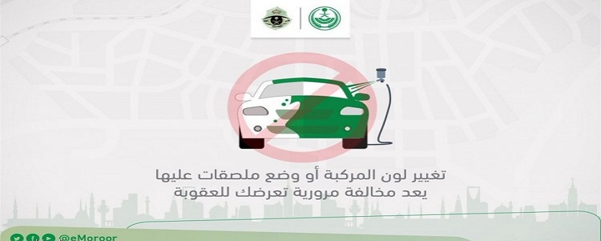 أكدت الإدارة العامة للمرور، اليوم الخميس (21 سبتمبر 2017م)، أن تغيير لون المركبة أو وضع ملصقات عليها للاحتفال باليوم الوطني، يعتبر مخالفة مرورية تستوجب العقوبة.
