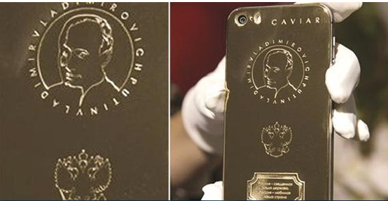 أصبح بإمكان الروس الراغبين في إظهار حبهم لرئيسهم، الحصول على هاتف «آي فون» مطلي بالذهب، ومحفور عليه صورة للرئيس فلاديمير بوتين .