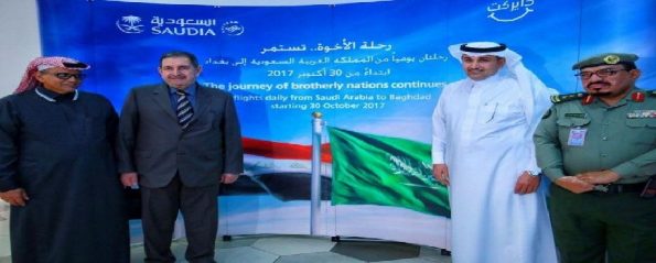 دشّنت الخطوط السعودية، مساء الاثنين (30 أكتوبر 2017م)، رحلاتها الرسمية والمنتظمة بين المملكة والجمهورية العراقية بعد توقف استمر 27 عامًا.