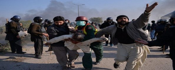 وقال مسؤول في وزارة الداخلية الباكستانية، إنه تم حشد نحو 8500 شرطي ومن عناصر القوات الخاصة للمشاركة في العملية التي بدأت في وقت مبكر. وذكر صحفيون في المكان أن رجال شرطة يرتدون بزات مكافحة الشغب أطلقوا القنابل المسيلة للدموع والرصاص المطاطي باتجاه المتظاهرين الذين ردوا بشكل متقطع برشقهم بالحجارة ومقذوفات أخرى.