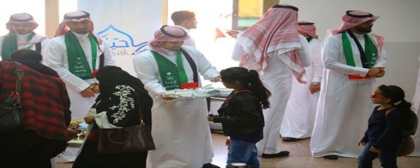 وتضمنت الفعاليات استقبال وتوديع الركاب القادمين والمغادرين بالورود والشوكولاتة، وتوزيع العلم السعودي وبعض الهدايا التذكارية الخاصة بالمناسبة.
