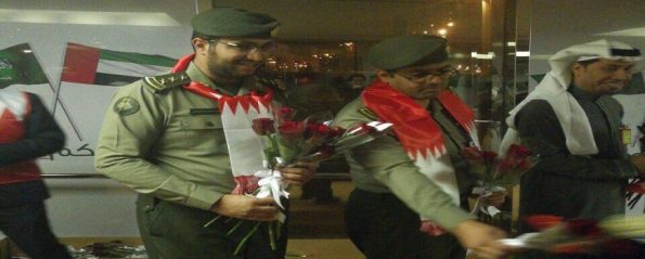 شاركت إدارة جوازات مطار الملك فهد الدولي بالظهران وجوازات جسر الملك فهد، باحتفالات اليوم الوطني 46 لمملكة البحرين الشقيقة ، وذلك بالترحيب بالأشقاء البحرينيين القادمين من البحرين والمغادرين لها، وتقديم الهدايا لهم، وتوزيع الأعلام البحرينية والسعودية وتقديم التهنئة لهم باليوم الوطني للبحرين.