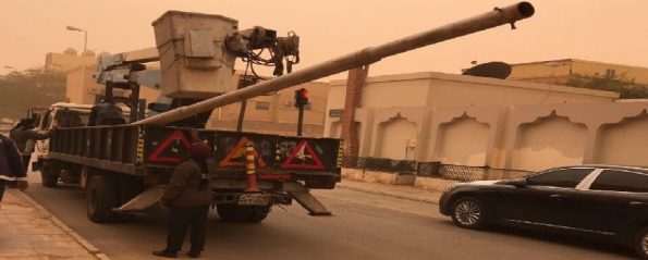موجة غبار تسقط أعمدة إنارة وتشل حركة المرور بعرعر
