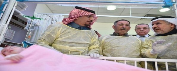 واطمأن الأمير خالد، على صحة الطفلة حنين، حيث استمع إلى شرح عن حالتها الصحية ومراحل العلاج والتأهيل بعد العملية، مهنئاً سموه والدا التوأم الطفيلي على نجاح العملية، متمنياً لهم دوام الصحة والعافية.